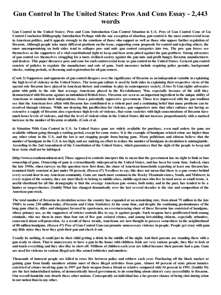 Here are the proper bibliographic citations for this page according to four style manuals in alphabetical order :. Skip to content. Gun Control. Should More Gun Control Laws Be Enacted? Pro 2 More gun control laws would reduce gun deaths. Pro 3 High-capacity magazines should be banned because they too often turn murder into gun control pros and cons essay murder. Pro 4 More gun control laws are needed to protect women from domestic abusers and stalkers.